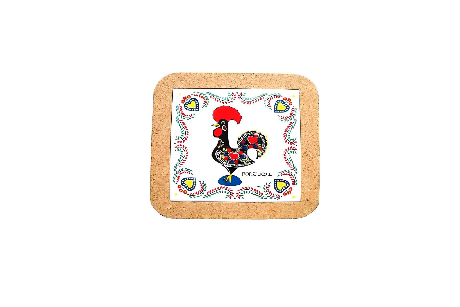 Mais do que uma simples base, esta peça combina tradição e praticidade com um toque vibrante da cultura portuguesa. Apresenta um azulejo cerâmico com o emblemático Galo de Barcelos, rodeado por motivos coloridos em vermelho, azul e amarelo, montado sobre uma estrutura em cortiça natural, ideal para proteger superfícies do calor. Uma peça funcional e decorativa, perfeita para qualquer cozinha ou mesa portuguesa.