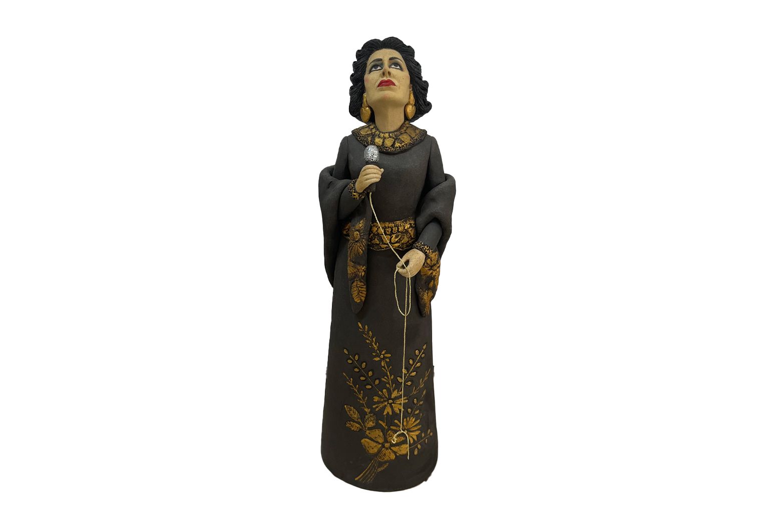 Homenagem à eterna Amália Rodrigues, esta magnífica figura decorativa em cerâmica capta a essência da rainha do fado. Com cerca de 70 cm de altura, vestida de negro com elegantes detalhes dourados, esta peça transmite a intensidade, a saudade e a paixão que marcaram a voz e a presença de Amália.