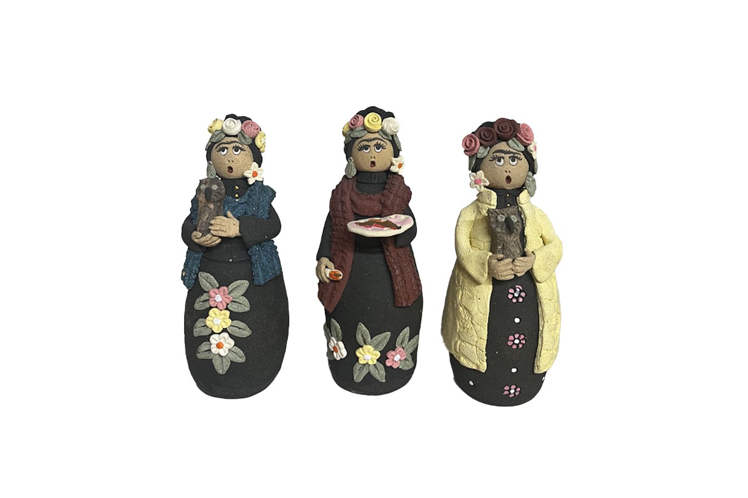 Estas figuras artesanais homenageiam Frida Kahlo, símbolo de força, liberdade e criatividade. Com trajes vibrantes, flores no cabelo e expressões únicas, cada boneca reflete a alma irreverente da artista mexicana que marcou a história da arte e da cultura. Com aproximadamente 30 cm de altura, são perfeitas para decoração, colecionadores ou como presente cheio de personalidade.