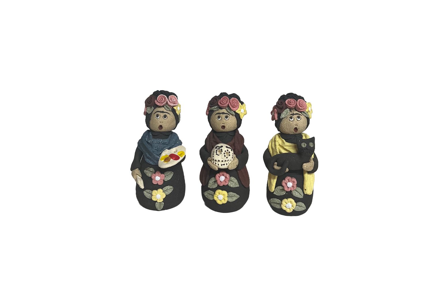 Frida Kahlo, símbolo de força, liberdade e criatividade. Com trajes vibrantes, flores no cabelo e expressões únicas, cada boneca reflete a alma irreverente da artista mexicana que marcou a história da arte e da cultura. Com aproximadamente 8 cm de altura, são perfeitas para decoração, colecionadores ou como presente cheio de personalidade.