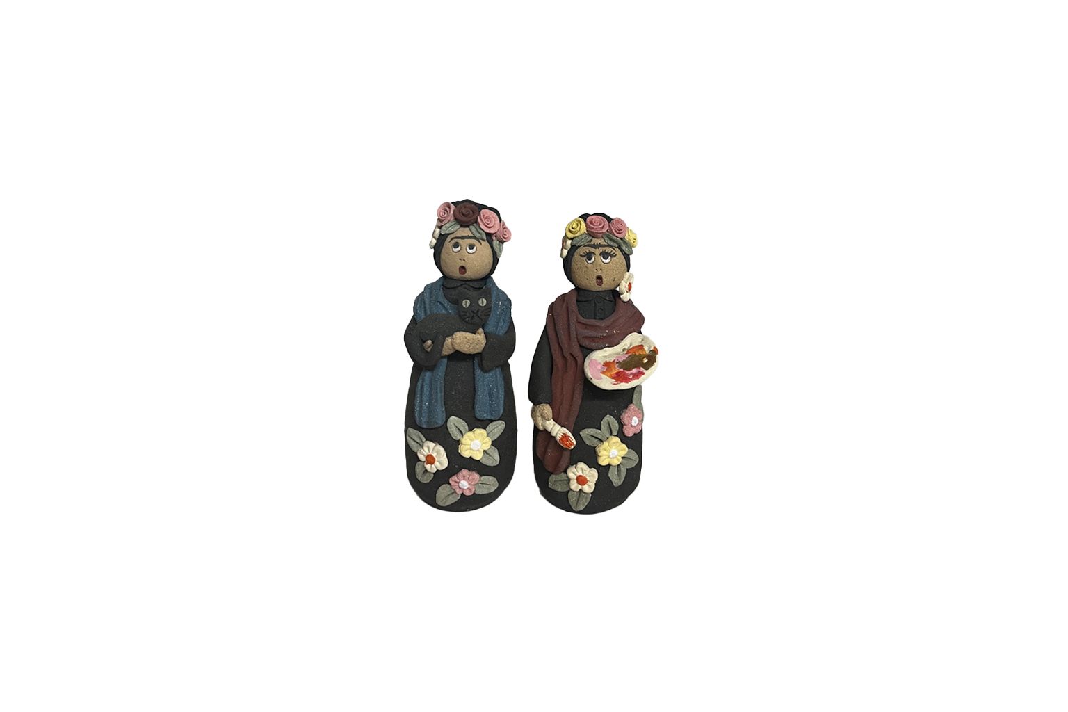 Estas figuras artesanais homenageiam Frida Kahlo, símbolo de força, liberdade e criatividade. Com trajes vibrantes, flores no cabelo e expressões únicas, cada boneca reflete a alma irreverente da artista mexicana que marcou a história da arte e da cultura. Com aproximadamente 15 cm de altura, são perfeitas para decoração, colecionadores ou como presente cheio de personalidade.