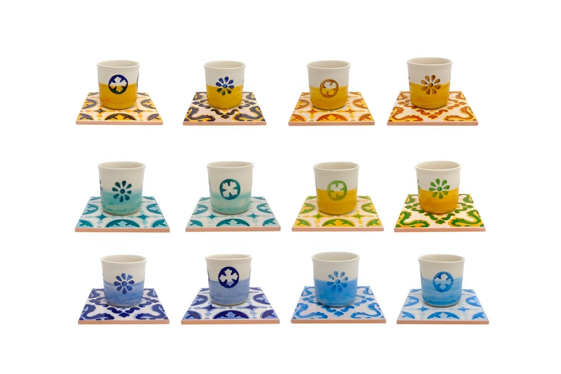 Coloridos, divertidos e cheios de identidade portuguesa, estes conjuntos de chávena e pires são inspirados nos tradicionais azulejos. Cada conjunto inclui uma chávena de cerâmica branca com detalhe colorido e um pires quadrado decorado com padrões típicos. Uma peça encantadora para saborear o café ou para presentear com charme.