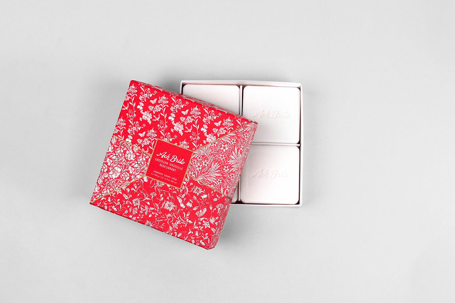Surpreenda-se com este requintado conjunto de sabonetes da prestigiada marca portuguesa Ach. Brito. Com um design floral vintage e embalagem decorativa em tons de vermelho e branco, este conjunto é ideal para oferecer ou para tornar o seu momento de cuidado pessoal ainda mais especial.
