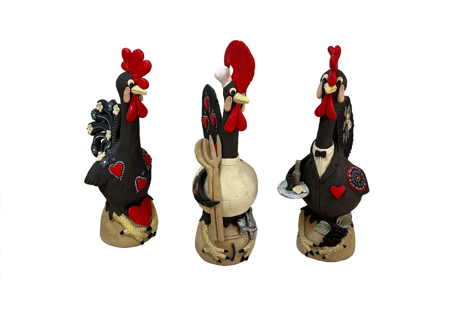 Uma reinterpretação divertida e original do icónico Galo de Barcelos, símbolo maior da sorte e da tradição portuguesa. Este conjunto de galos destaca-se pelos detalhes criativos: cada figura apresenta um visual único. Com aproximadamente 40 cm de altura, é ideal para decorar a casa com um toque contemporâneo de tradição, ou para oferecer como presente tipicamente português.