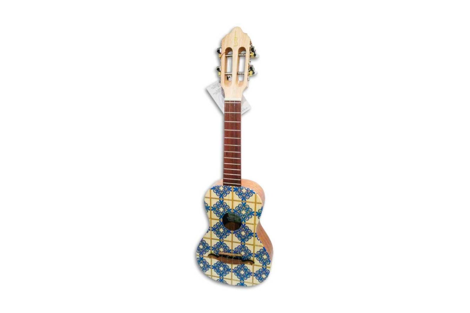 Este cavaquinho une a tradição musical portuguesa à riqueza visual do património azulejar. Com acabamento detalhado em padrão de azulejos azuis e amarelos, cada peça torna-se única e expressiva – ideal tanto para tocar como para decorar. Fabricado em Portugal com atenção aos detalhes e som autêntico, é uma excelente escolha para quem procura um instrumento com personalidade e raízes culturais profundas.
