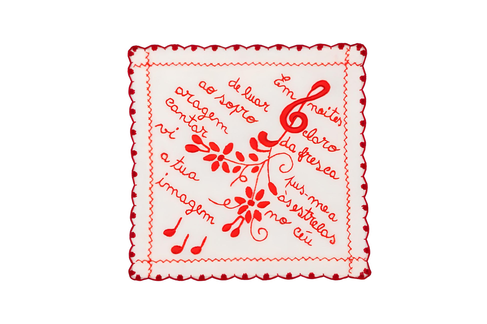 Inspirado numa das tradições mais poéticas do artesanato português, este Lenço dos Namorados bordado à mão traz consigo uma mensagem de amor, música e saudade. Com detalhes em vermelho vivo sobre fundo branco, é uma peça simbólica e decorativa, ideal como presente romântico ou lembrança cultural.