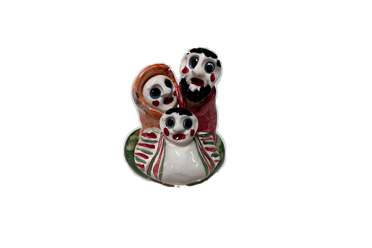 Este mini presépio foi feito e pintado à mão pela artesã certificada Conceição Sapateiro, da Rota do Figurado de Barcelos.