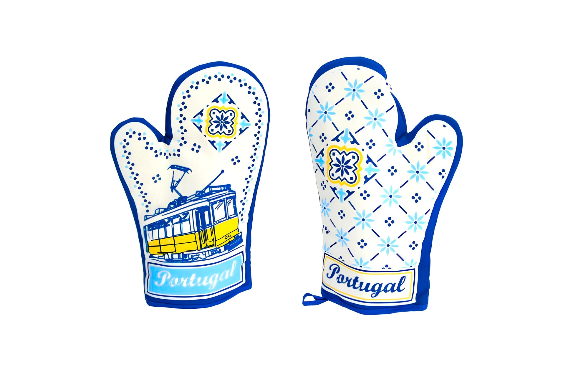 Com um toque de tradição e funcionalidade, estas luvas de cozinha celebram o espírito lisboeta e a arte dos azulejos portugueses. Decoradas com o icónico elétrico amarelo e motivos em azul e branco inspirados na cerâmica tradicional, são perfeitas para trazer cor e autenticidade à sua cozinha.