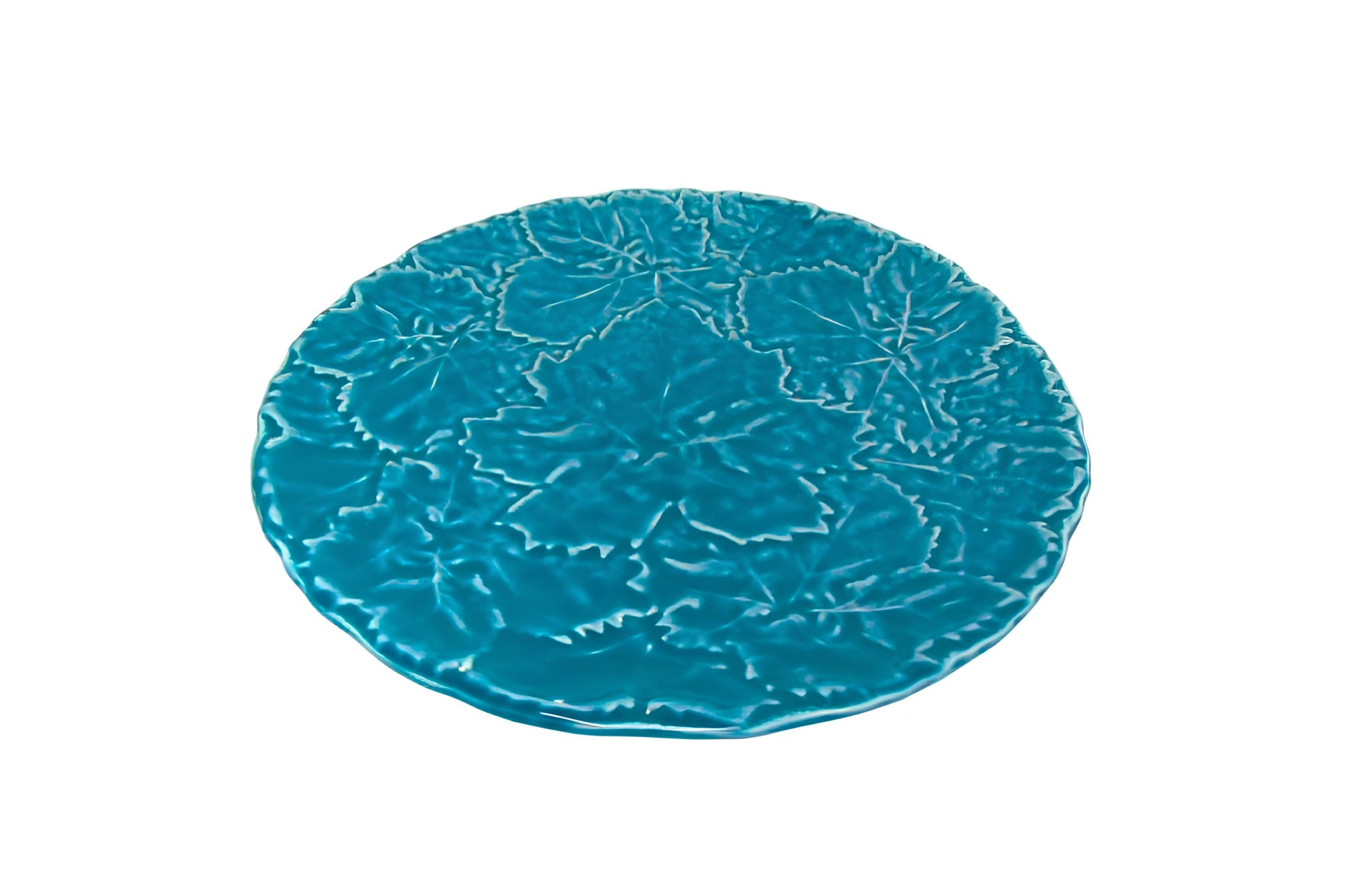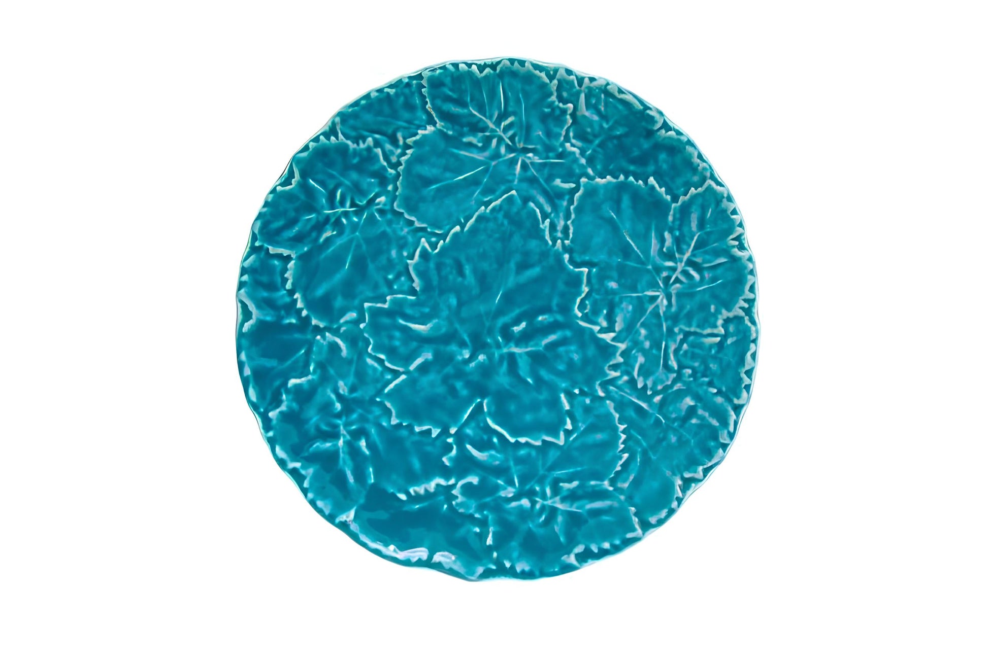 Este elegante prato de cerâmica, combina arte e funcionalidade em uma peça de cerâmica portuguesa pintada à mão. O relevo de folhas sobre o fundo azul intenso dá um toque sofisticado e orgânico à mesa, perfeito para servir ou decorar.