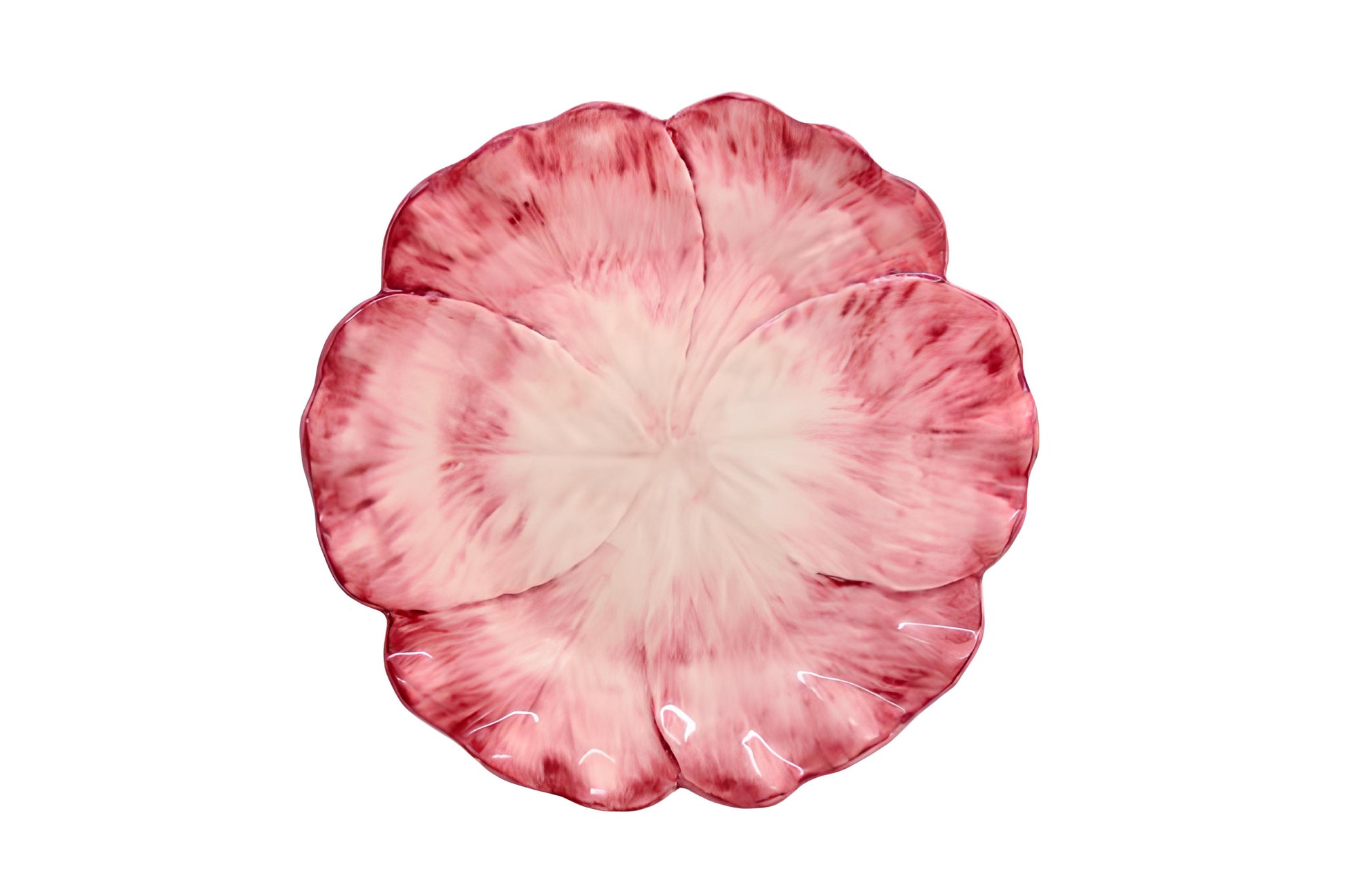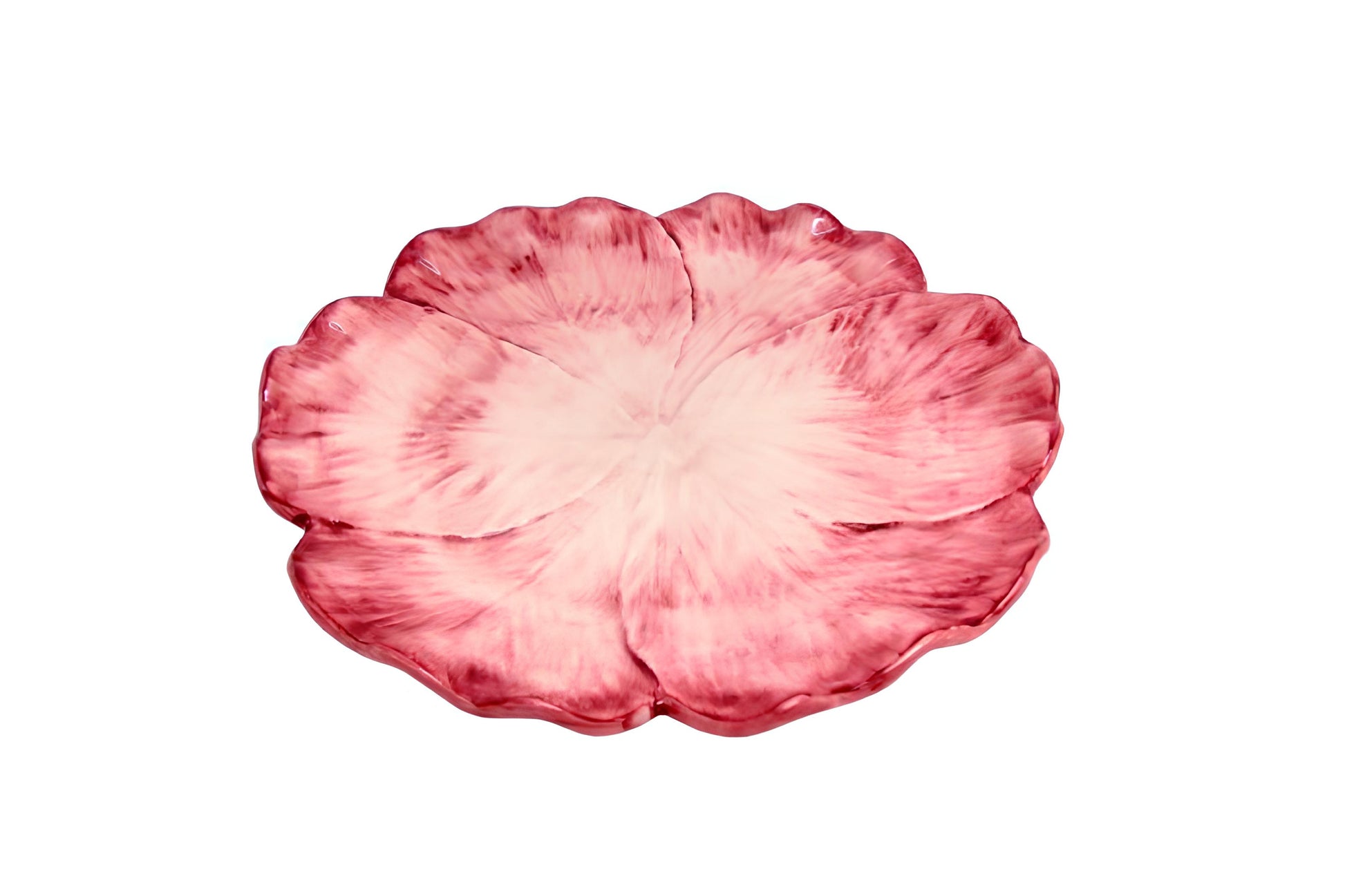 Com um design delicado e marcante, este prato de cerâmica, pintado em tons de rosa, traz um toque de natureza e elegância à sua mesa. Ideal para servir entradas, doces ou como peça decorativa, é uma celebração do artesanato português.