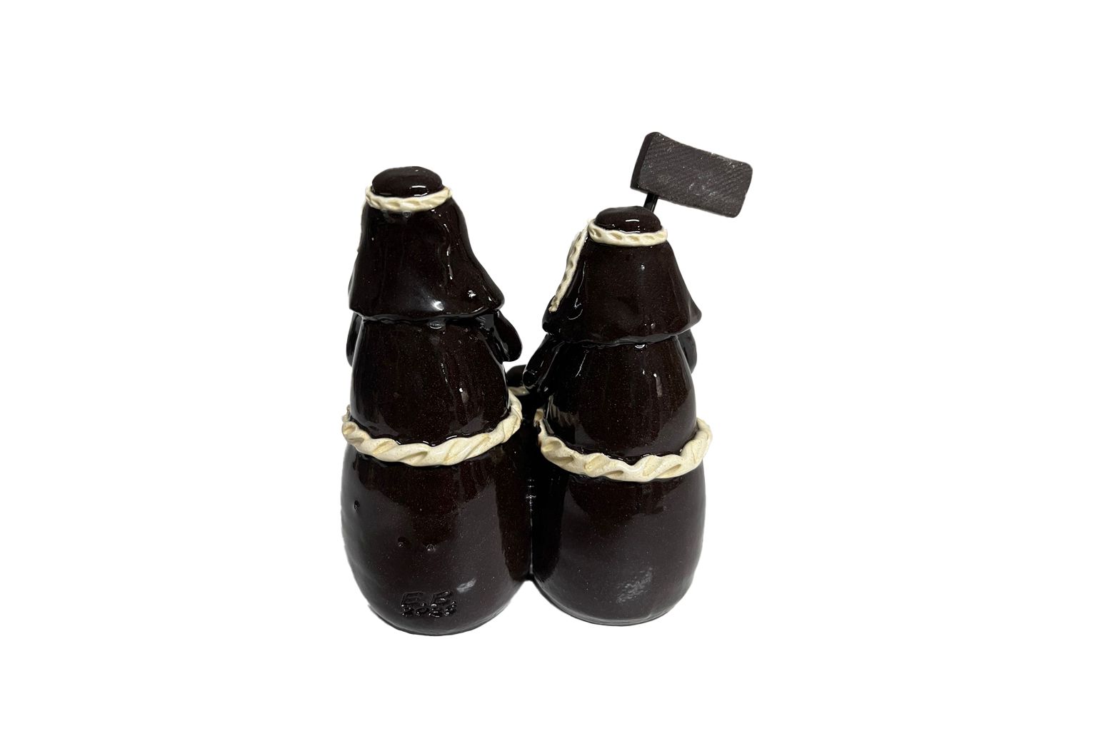 Criado e esmaltado manualmente pelo artesão Eduardo Pias, este presépio combina simbolismo religioso com arte popular, resultando numa peça original e expressiva. Com aproximadamente 15 cm de altura, é uma representação autêntica do artesanato português e uma homenagem à devoção bracarense.