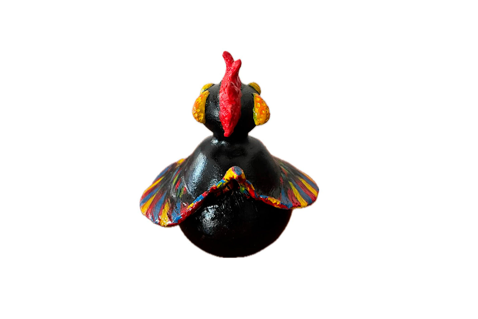 Pintado à mão com cores vivas e tradicionais.