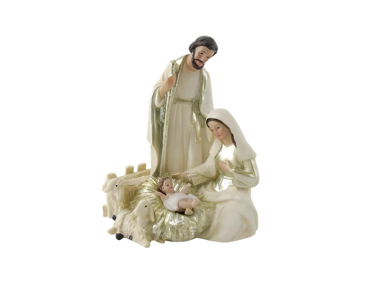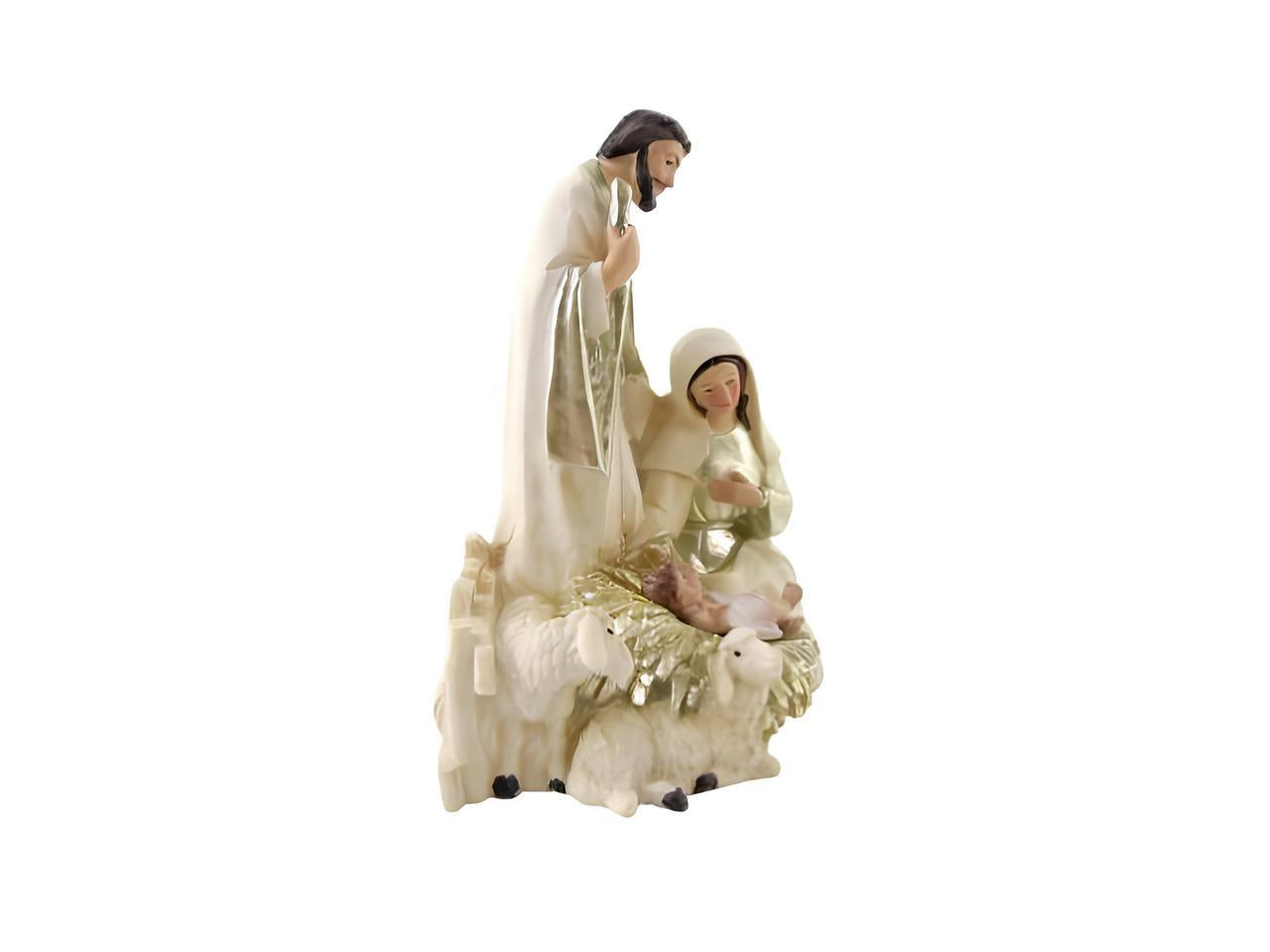 Produzida em resina de elevada qualidade, apresenta pintura artesanal em tons suaves e delicados, com pormenores cuidados que evidenciam a ternura e a harmonia da cena.