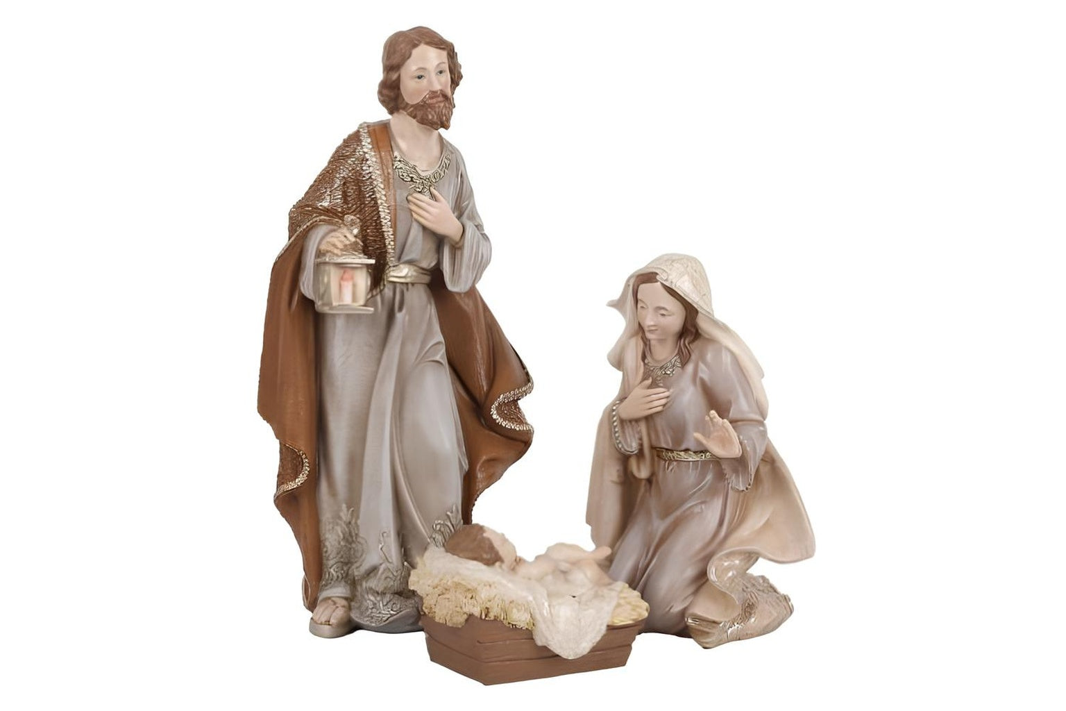 A Sagrada Família é símbolo de união, amor e proteção, representando São José, a Virgem Maria e o Menino Jesus numa cena serena e repleta de significado espiritual. Esta imagem transmite paz, fé e devoção, tornando-se uma presença inspiradora em qualquer ambiente.