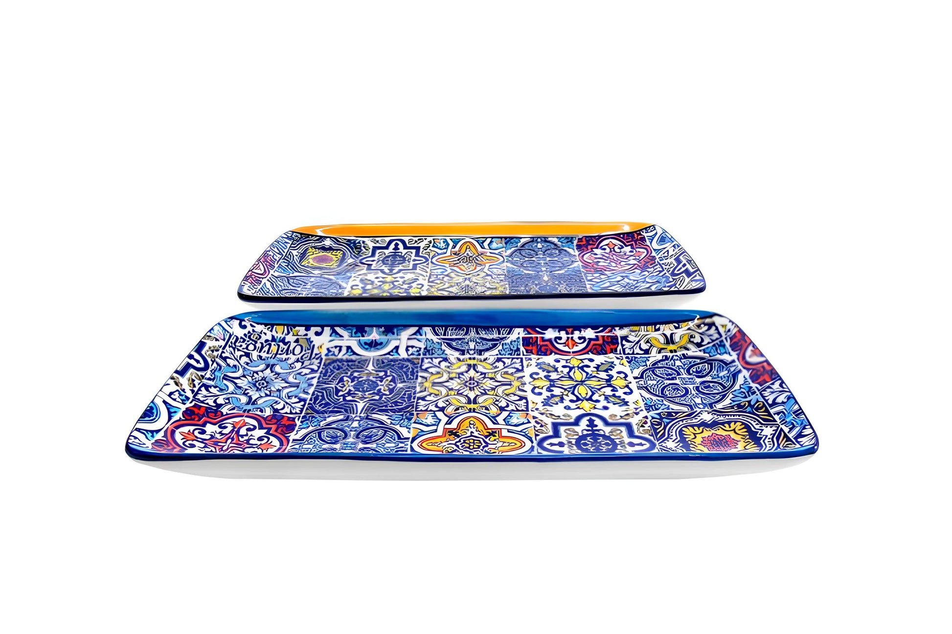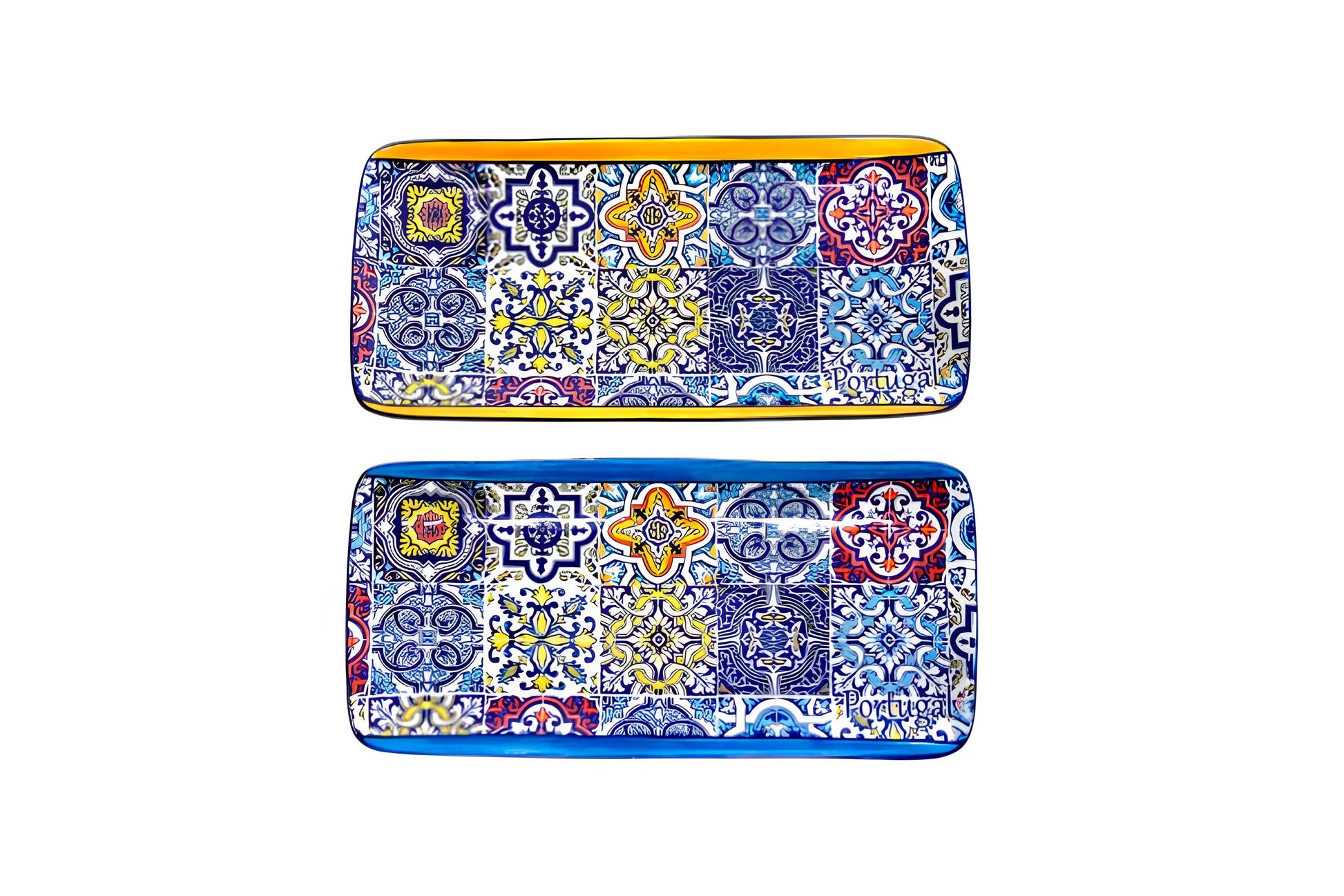 Inspirada nos tradicionais azulejos portugueses, este tabuleiro retangular em cerâmica combina arte e funcionalidade. Com um design colorido e detalhado, é ideal para servir entradas, sobremesas ou até como peça decorativa.
